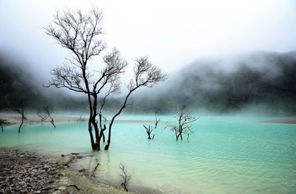 Salah satu contoh nyata hidrogeologi di Jawa Barat dan wisata adalah Kawah Putih di kawasan Ciwidey. Danau kawah ini terbentuk akibat aktivitas vulkanik dan diisi oleh air yang berasal dari presipitasi serta sistem hidrotermal di bawah permukaan. Warna airnya yang dapat berubah-ubah dipengaruhi oleh kandungan mineral dan kondisi kimia air, yang semuanya menjadi objek kajian hidrogeologi menarik sekaligus daya tarik wisata.